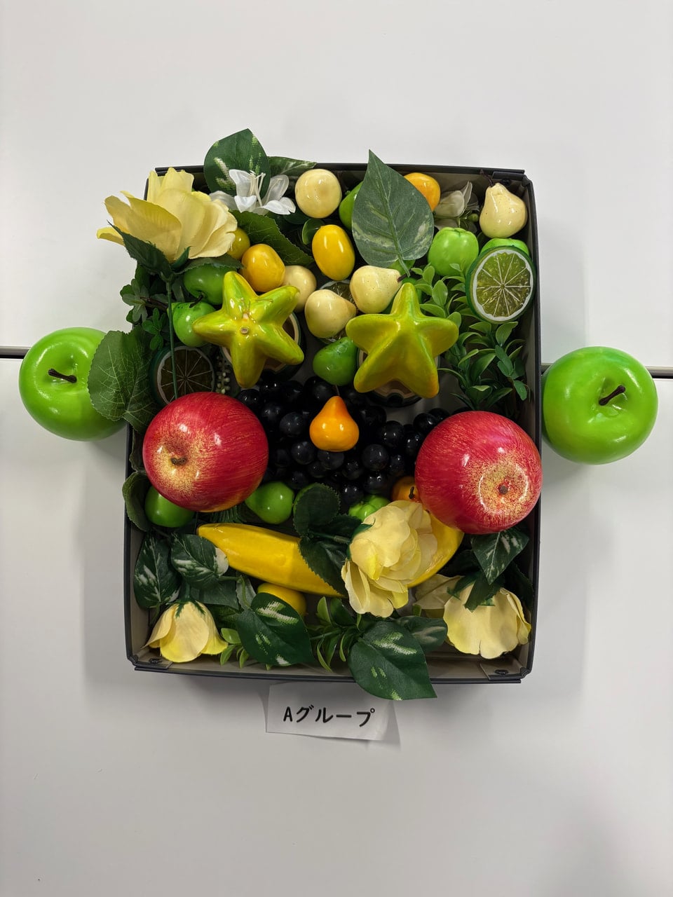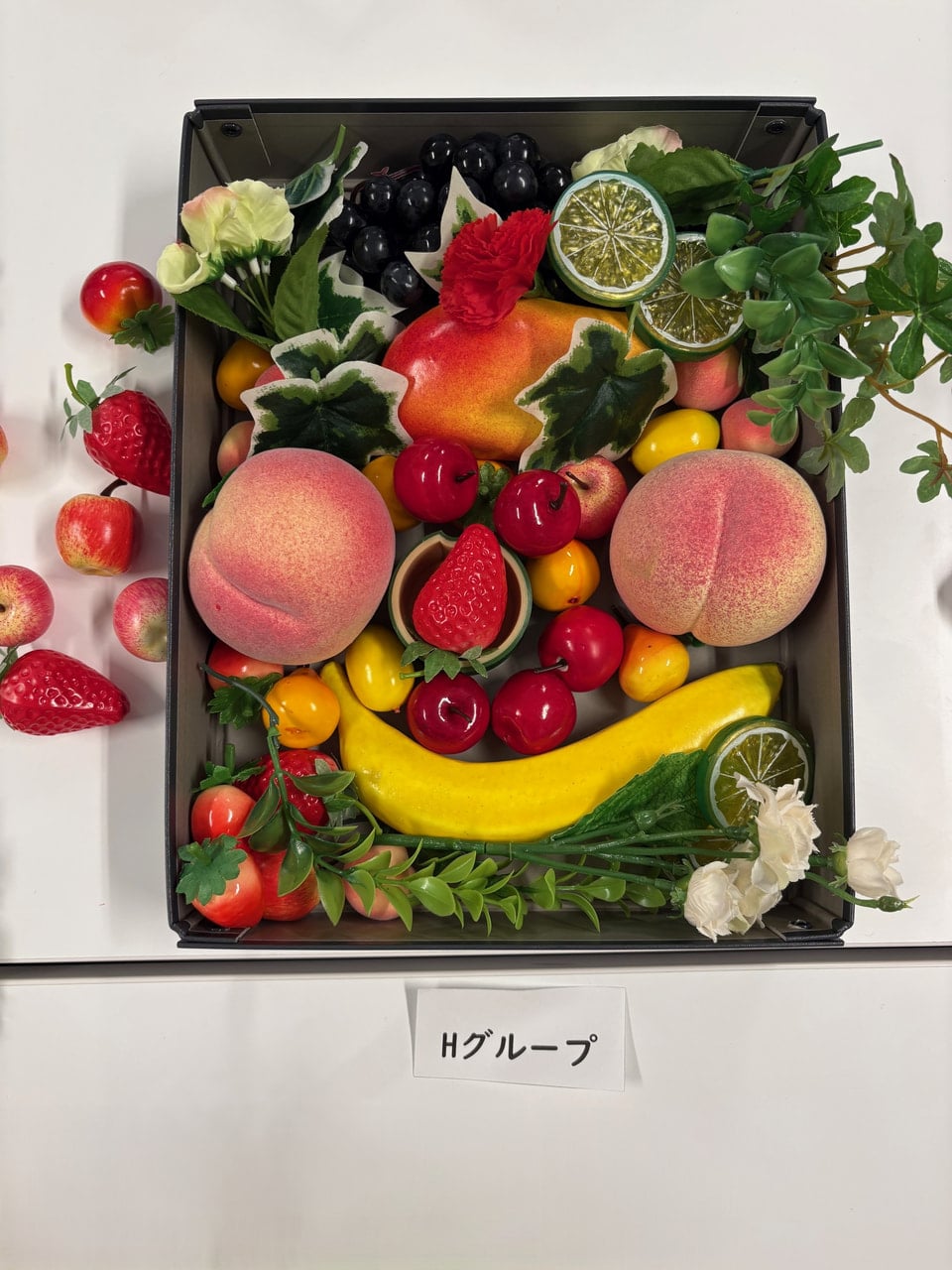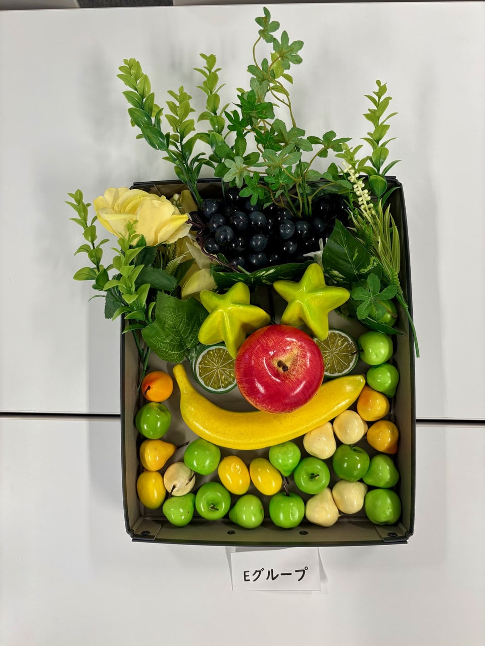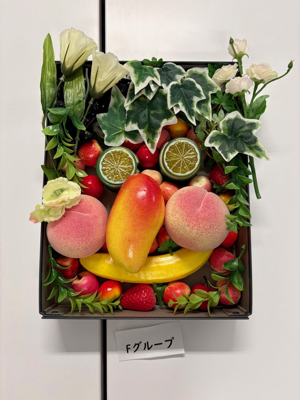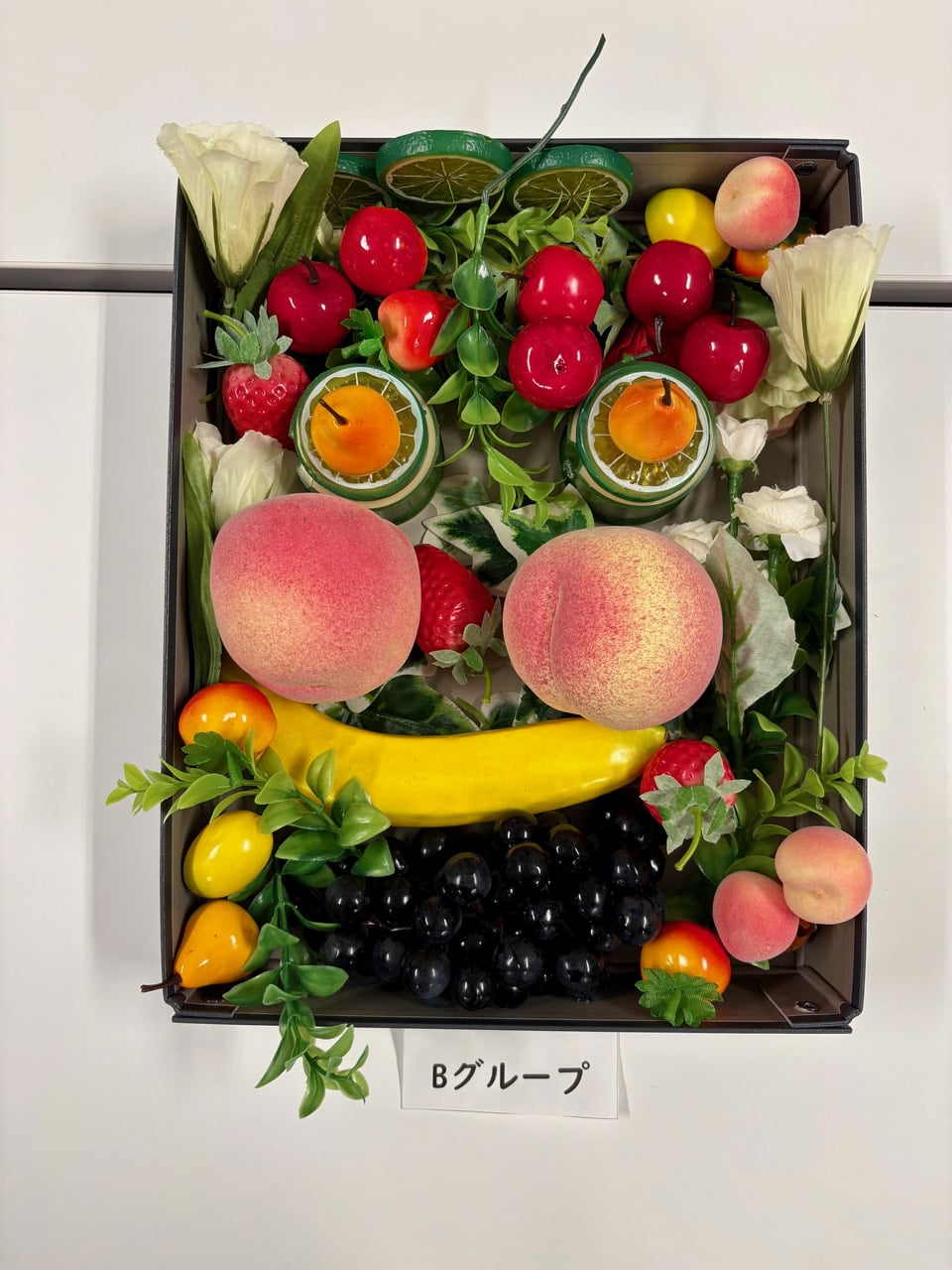 ・実際に取り組んでみて、意外とどの果物でも顔には見えましたが、果物や置く場所によって顔の印象が変わるのが面白いと思いました。使う素材は一緒のはずなのに、グループによって全く違う顔を作ることができるのがとても興味深かったです。