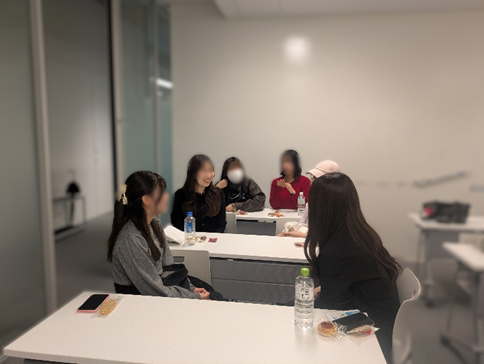 3年生からは就活のことやゼミ活動、将来への不安などさまざまな質問が出て、4年生が自分の経験をもとにアドバイスしました。終始和やかな雰囲気の中で、学年を越えて会話が弾み、3年生にとっては今後のことを考えるヒントに、4年生にとっても自分を振り返る良い機会となりました♬(4年生,M.S.)