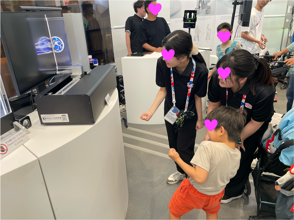 6日間という短いようで長いような期間(初日は永遠に感じましたが…笑)でしたが、今回のお手伝いを通じて、研究が「社会の中で実際に人に体験される」という場に立ち会える貴重さを強く実感しました。想像以上に多くの方が最先端の技術に興味を持ってくださり、驚きと共にとても嬉しい気持ちになりました。特に印象的だったのは、初日に体験してくださった方が「すごく楽しかったから」と友人を連れて再来場してくださったことです。自分たちの説明や対応が誰かの記憶に残り、次につながる体験になっていると実感できて、大きなモチベーションになりました。最終日には、学生合宿所で上田先生も一緒に打ち上げを行い、全員でこの6日間を振り返りました。疲れ切っていたはずなのに、思い出話に花が咲いてあっという間に時間が過ぎていったのも忘れられません。