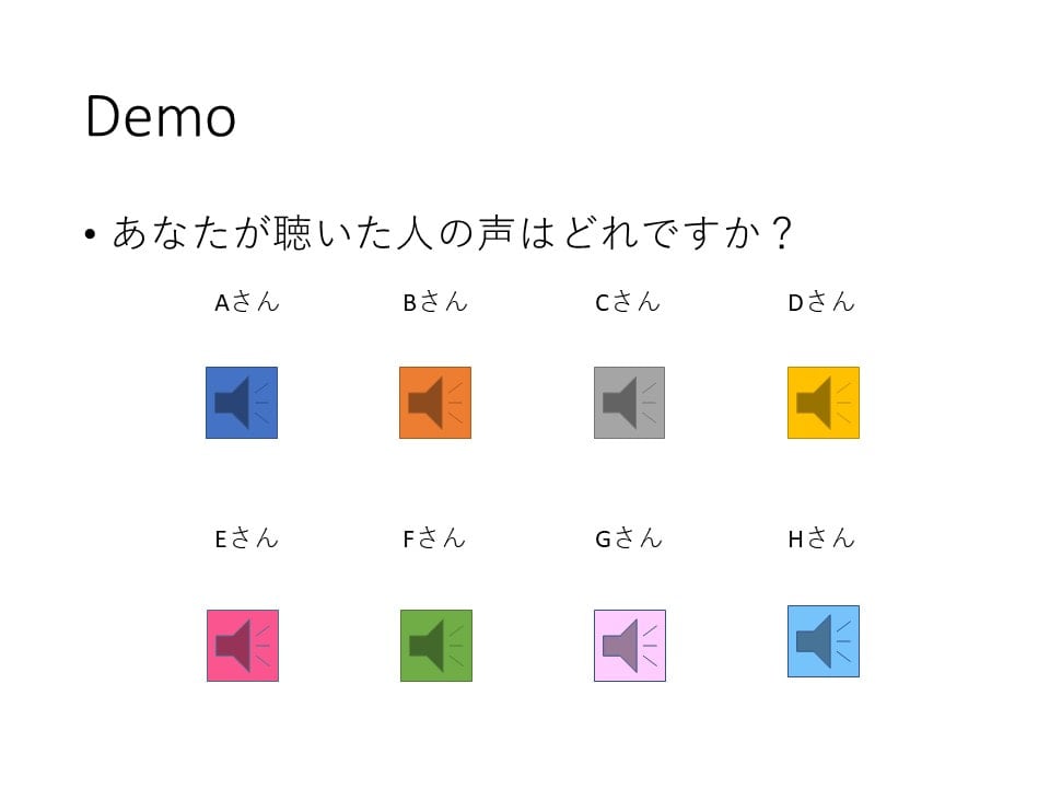その後、先ほど聴いた人の声はどれかを8人の中から選んでいただきました。