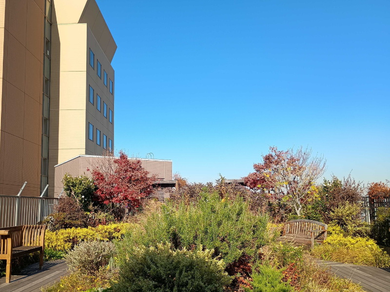 百年館低層階屋上には泉フロートガーデンという、季節の花々がみられるお庭があります。