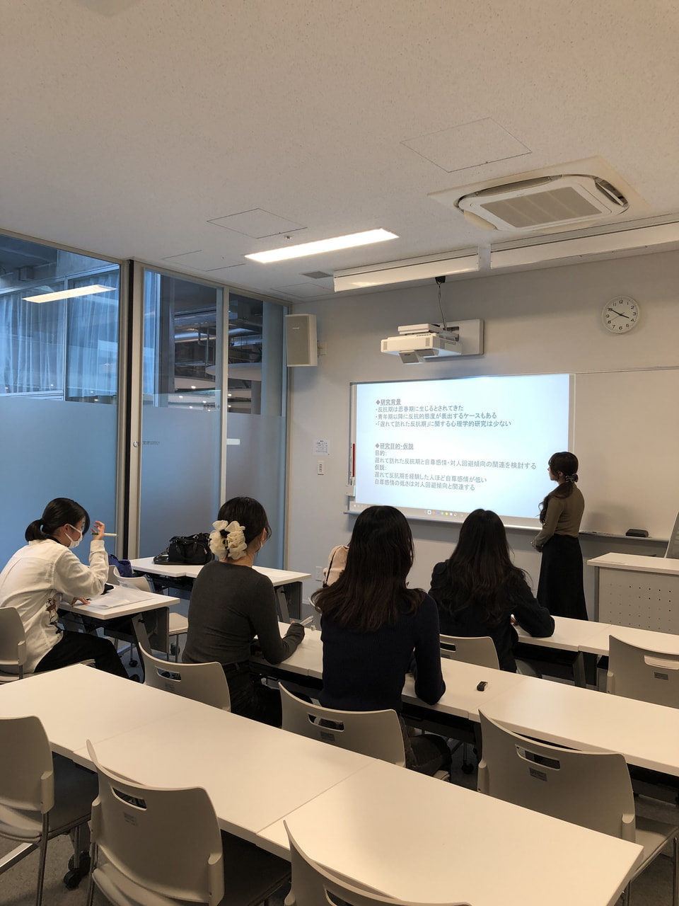 青木ゼミでは臨床心理学全般を対象にしていますが、その中でも学校や家族などの、集団を対象に興味を持つ人が多い印象です。この日は、主なキーワードとして「きょうだい」「反抗期」「親子関係」「思春期」「家族コミュニケーション」などが目立ちました。