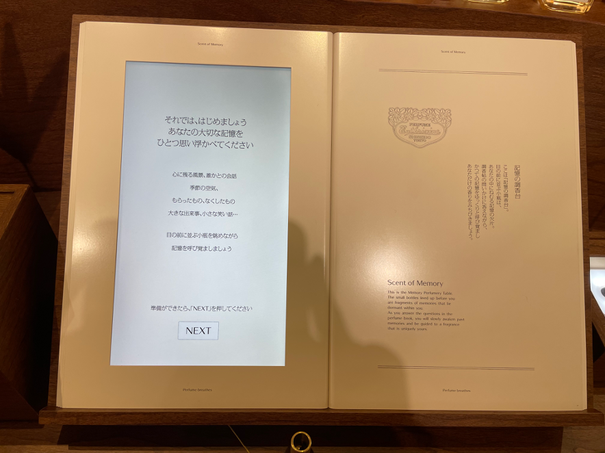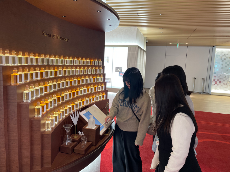 中でも印象的だったのが、「記憶」をテーマに香りを創り出す調香体験「Scent of Memory」です。実際にみんなで体験してみたのですが、それぞれがイメージを膨らませながら試して作り出された香りは、まさに記憶と思い起こさせるようなもので、衝撃を受けました。卒論研究で扱っていた香りとはまったく違う方向の、洗練された素敵な香りに触れることができたのも新鮮で、「香り」とひとことで言っても、本当に多様な世界があるのだと改めて感じました。