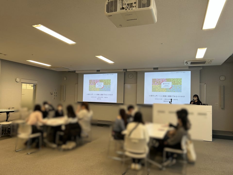 各学科でさまざまなプログラムが実施される中、心理学科でも25日に体験型の企画を行いました。